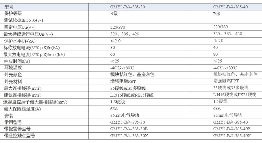 產(chǎn)品概述GMYI-B/4-385-30、GMYI-B/4 -385-40電涌保護(hù)器適用于交流50/60Hz,額定電壓至380V的TT 、TN-S 、TN-C 、TT等供電系統(tǒng),可作為雷擊時(shí)等電位連接,其設(shè)計(jì)依據(jù)完全符合IEC6 1 64 -1 、GB50057-94(2000年版)